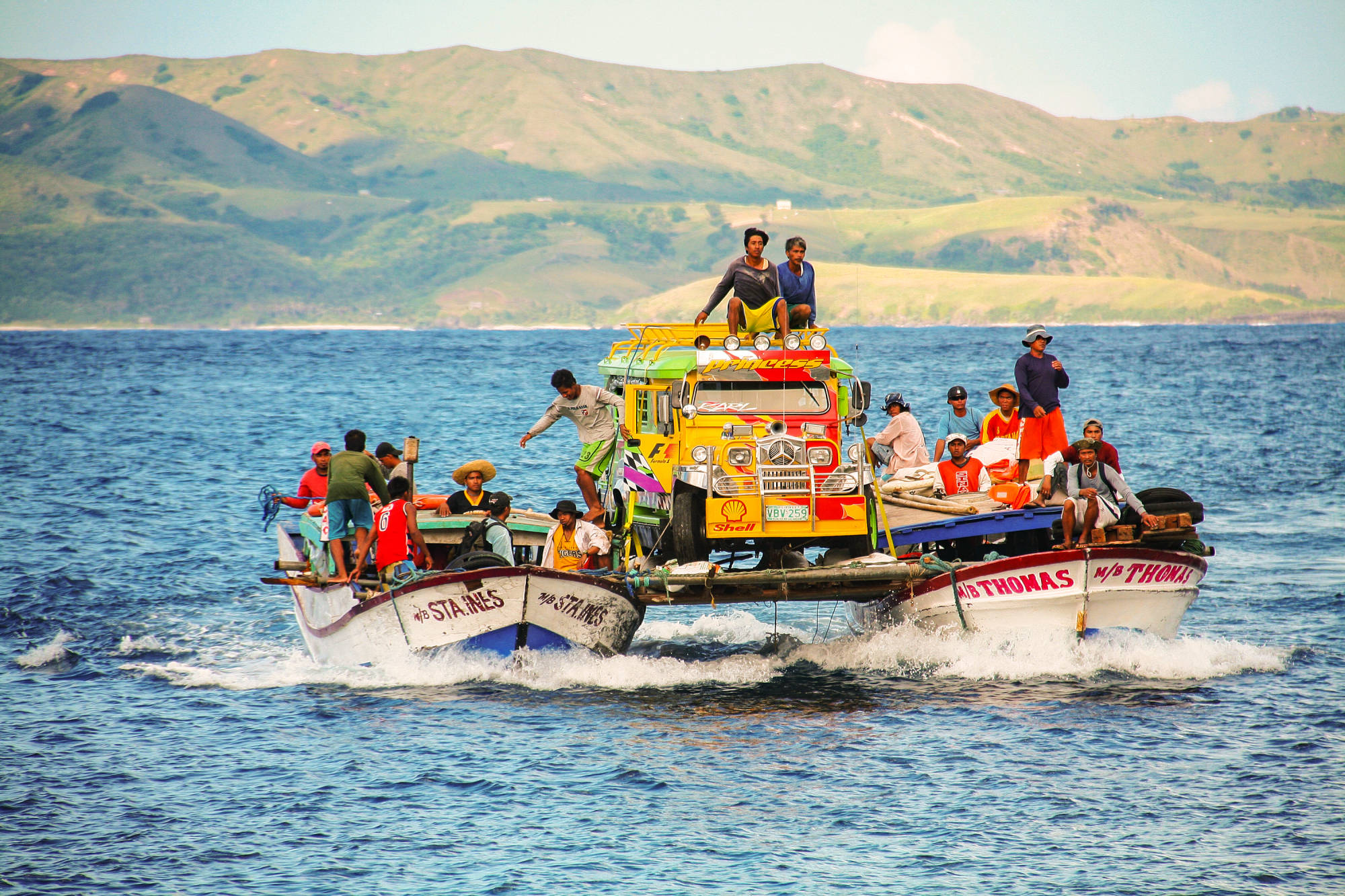 Inter-island transport for jeepney in Batanes. Two fishing boats ferry a jeepney to Sabtang Island, Batanes. The precarious chartered transport for the vehicle costs approximately P6000 for a one-way trip from nearby Batan Island. April 2012. GMA News